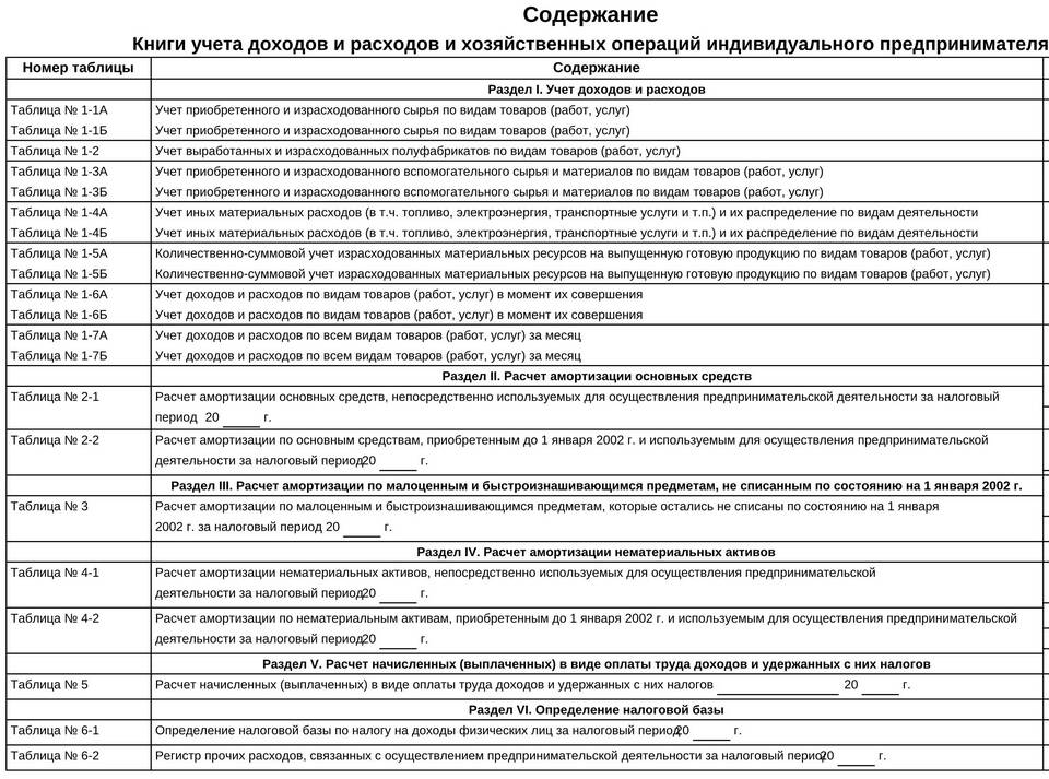 Содержание книги учета доходов и расходов