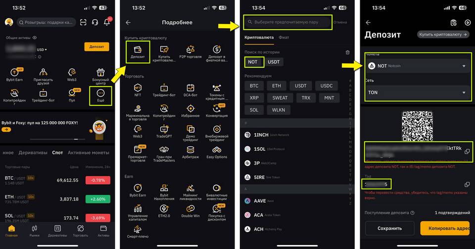 - Скопируйте криптоадрес или QR-код