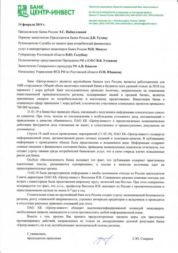 Кому: | Название банка, ФИО руководителя (если известно) |