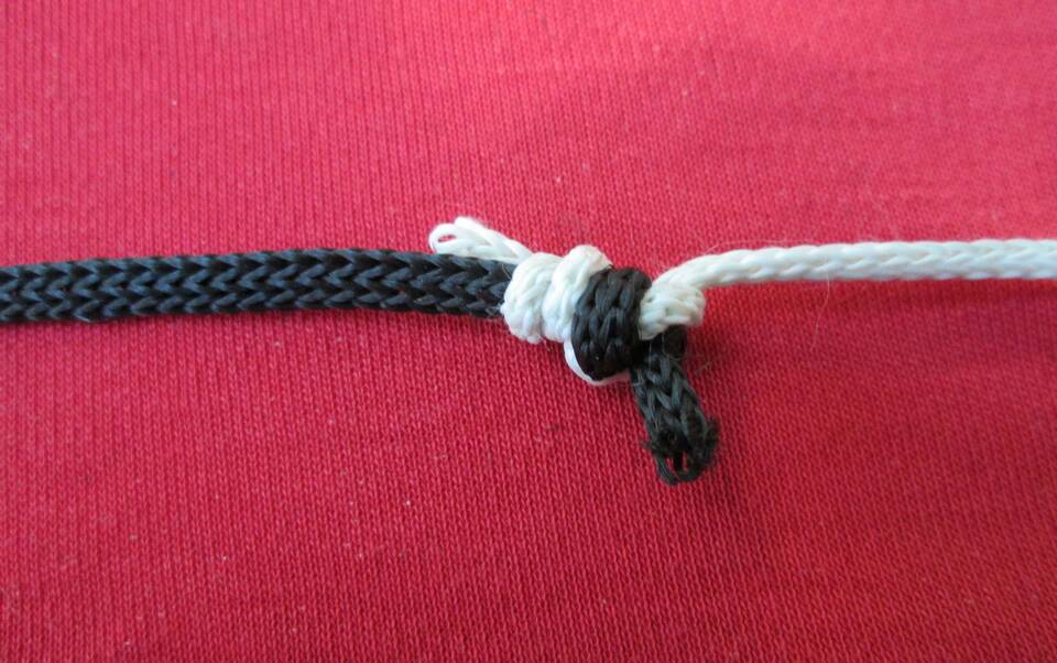 1 | Сложите леску и нитку параллельно (перехлест 15 см) |