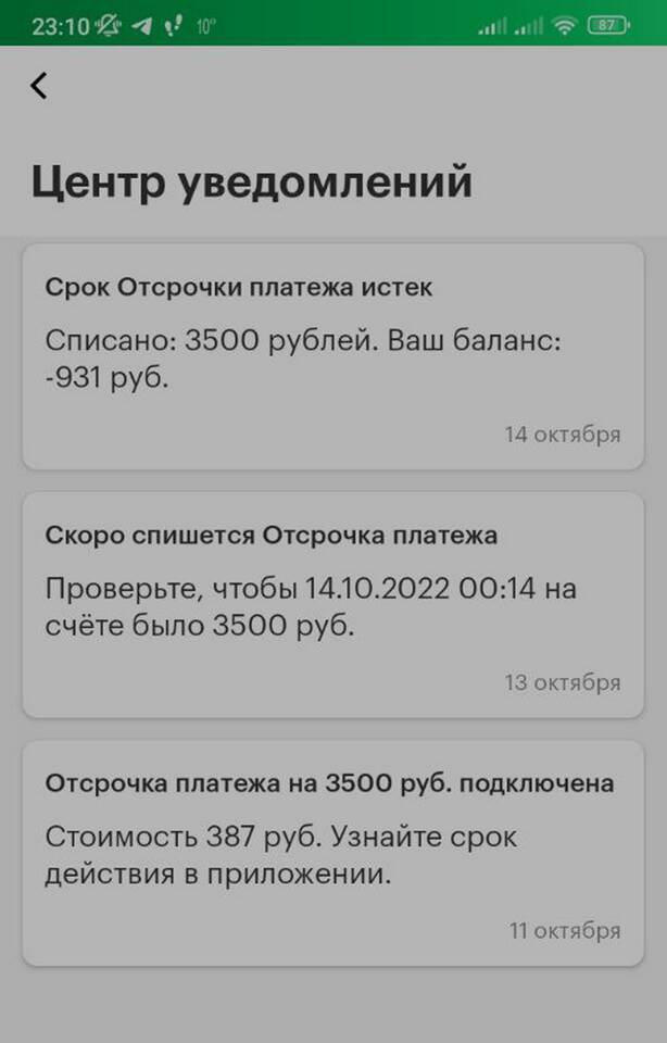 - Получение уведомлений о состоянии счета
