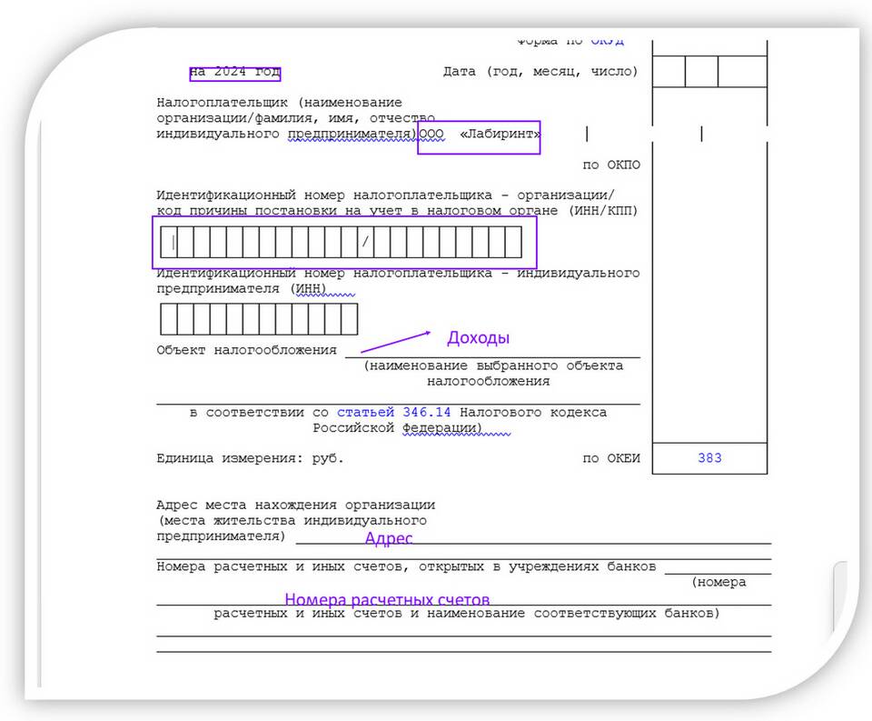 - Обозначить применяемую систему налогообложения
