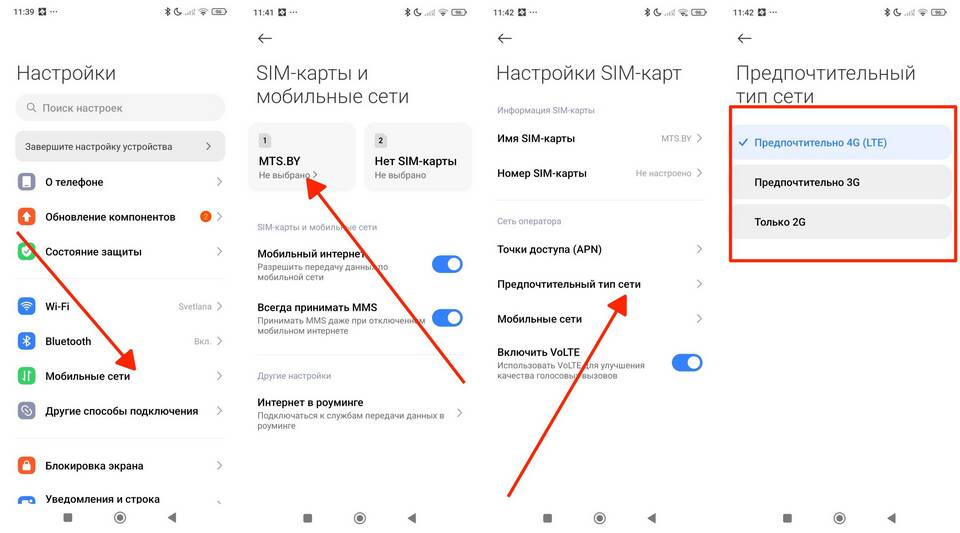 Смена режима сети | Выбрать предпочтительный тип сети в настройках |